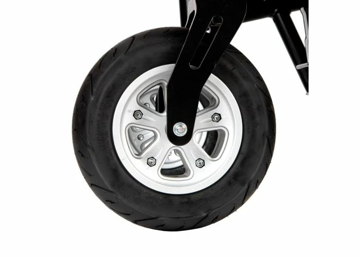 The 10″x3″ rear caster wheel for the Drive Medical Trident HD power chair comes with a black flat-free tire