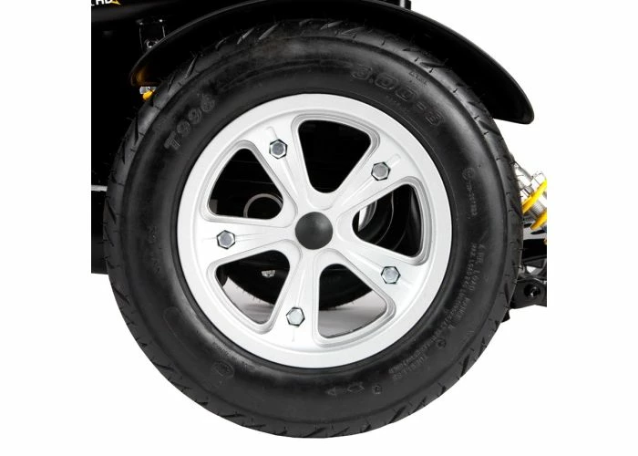 Here is the 14″x3″ (3.00-8) drive wheel assembly for Drive Medical Trident HD power chair