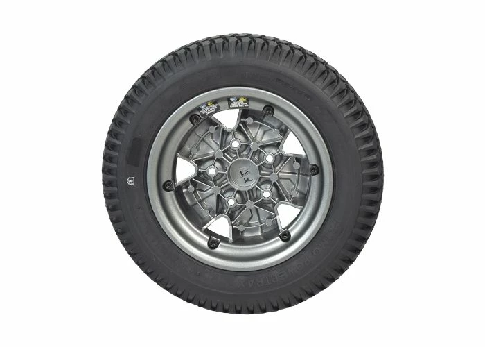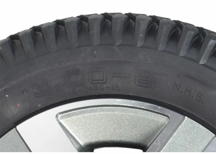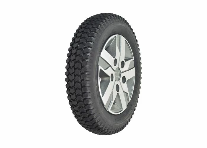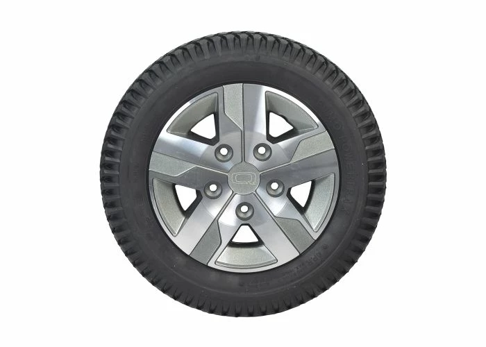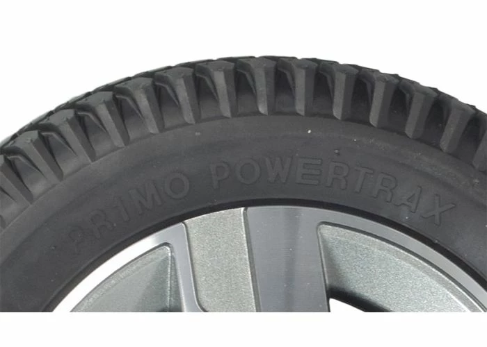 The 14″x3″ flat-free drive wheel assembly with a titanium rim for the Quantum Q6 Edge 2.0 and Q6 Edge 2.0 X power chairs sports a knobby tread black tire for performance indoors or out