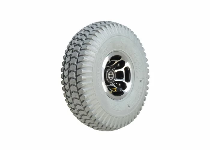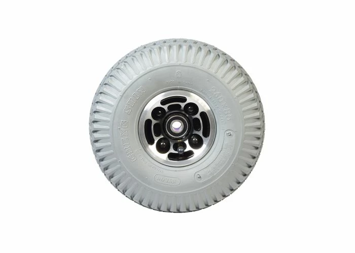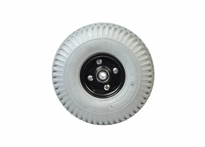 The 3.00-4 (10″x3″, 260×85) pneumatic front wheel assembly for the Golden Technologies Companion II (GC440) 4-wheel mobility scooter offers the smooth ride that only air-filled tires can boast