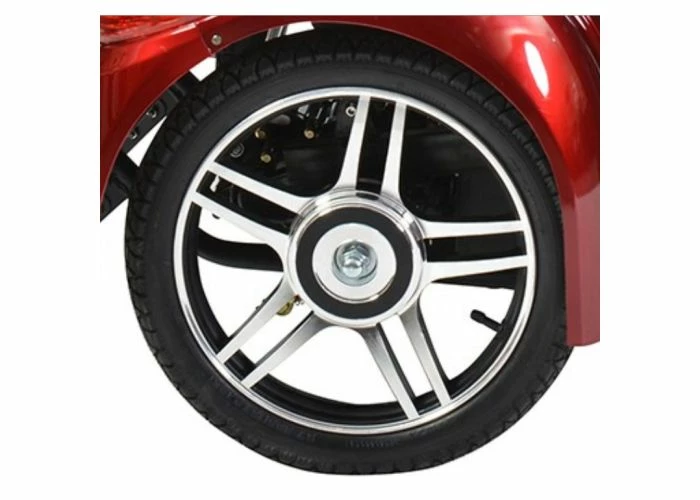 The rear wheel assembly for the Drive ZooMe R3 (R318CS) mobility scooter features a 16″x2-1/2″ pneumatic tire and inner tube mounted on the rear rim