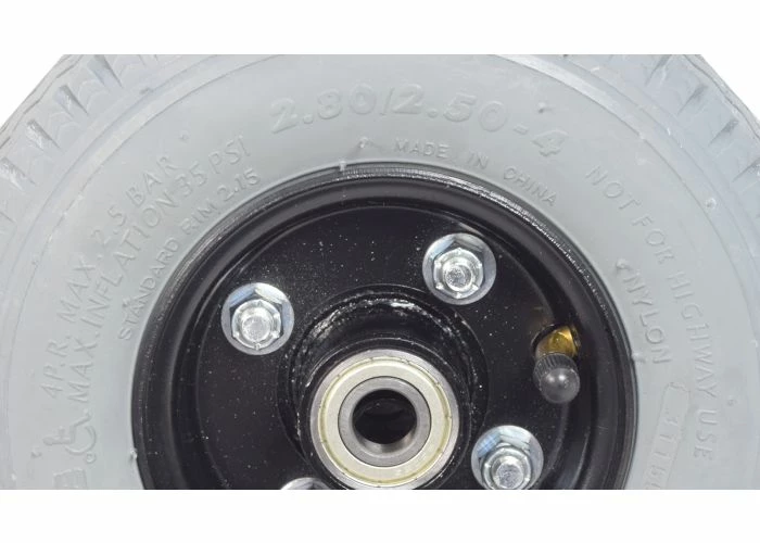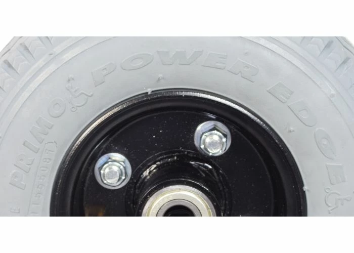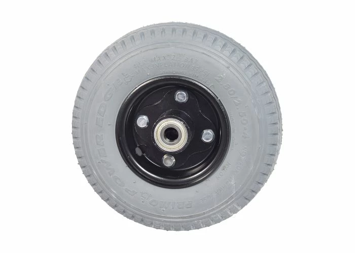 The 9″ (220×75) pneumatic front wheel assembly for the Golden Companion II (GC340) is for those people who prefer the air-filled pneumatic ride as opposed to the stiffer ride that you get with foam-filled or solid core tires