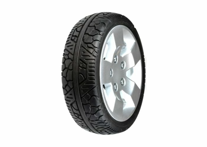 13″ flat free (foam-filled) rear wheel assembly for all versions of the Pride Pursuit scooter by Pride Mobility