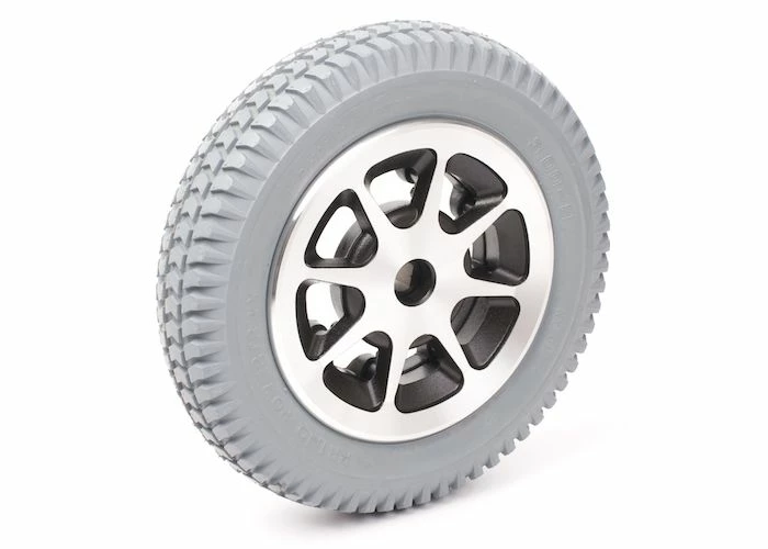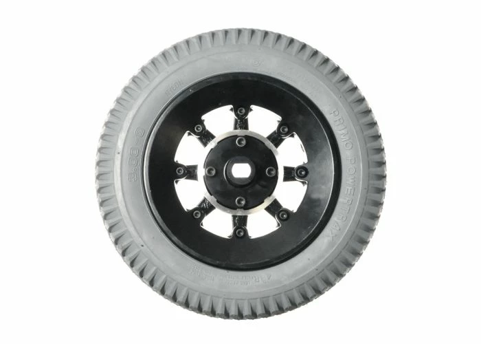 14″x3″ (3.00-8) flat free drive wheel assembly for the Jazzy 1100, 1120, 1120-2000, and 1122 power chairs manufactured on and after February 14, 2002