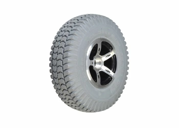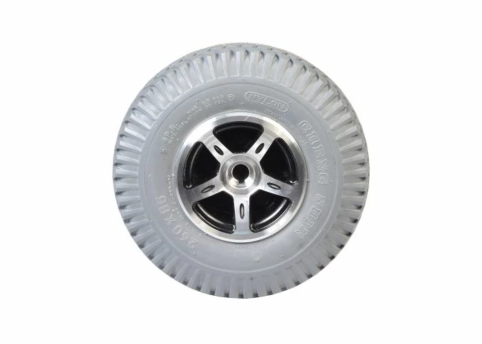 Our 3.00-4 rear wheel assembly for the Merits P310 Power Chair offers solid, flat free dependability and a great floor-gripping tread.