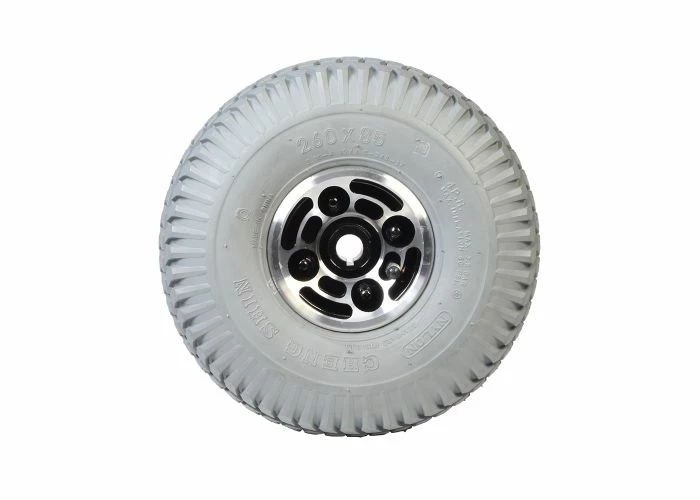 Please note that this wheel assembly will only work on the second-generation Companion II scooters with the GC340 or GC440 model numbers. It isn’t compatible with Golden’s earlier Companion scooters such as the GC321, GC221, GC322, GC323, or GC325. It will only mount on a 3/4″ diameter axle.