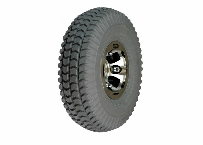 Here is the 3.00-4 (10″x3″, 260×85) pneumatic rear wheel assembly for the PaceSaver Espree Series and PaceSaver Passport mobility scooters