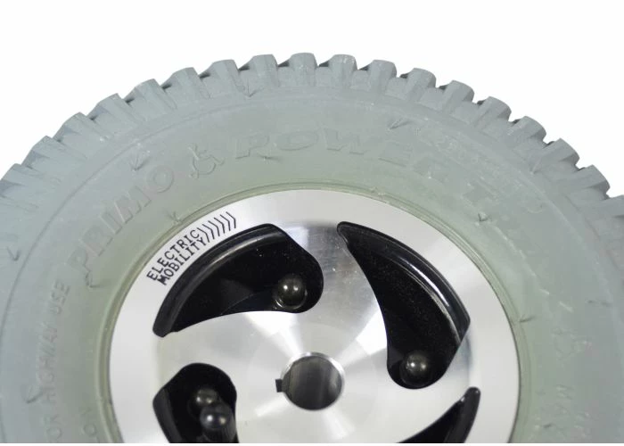 This is a heavy duty pneumatic rear wheel assembly for the Rascal 235, 245, 305, and 600 series of electric mobility scooters