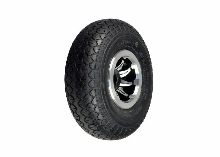 Includes a foam-filled, flat-free Cheng Shin 3.00-4 tire with C-154 tread pattern.