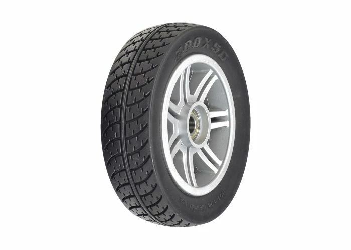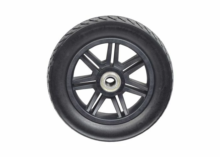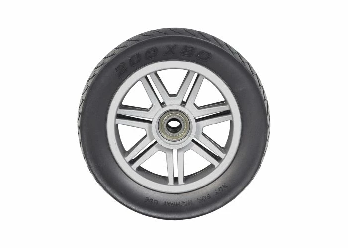 This is the OEM 8″x2″ flat free front wheel assembly for the Drive Medical Spitfire Scout DLX 4-wheel mobility scooter