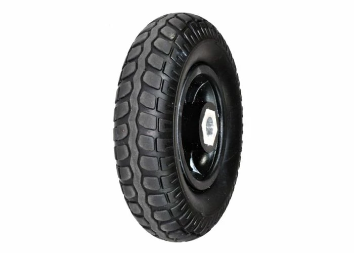 This nominal 8″ (actual diameter 7-1/4″) black rubber tire was designed especially for the Drive Medical Phantom scooter, but will work just as well on the Phoenix models. The knobbier tread pattern makes this great wheel assembly as good on the asphalt as it is in the shopping mall.