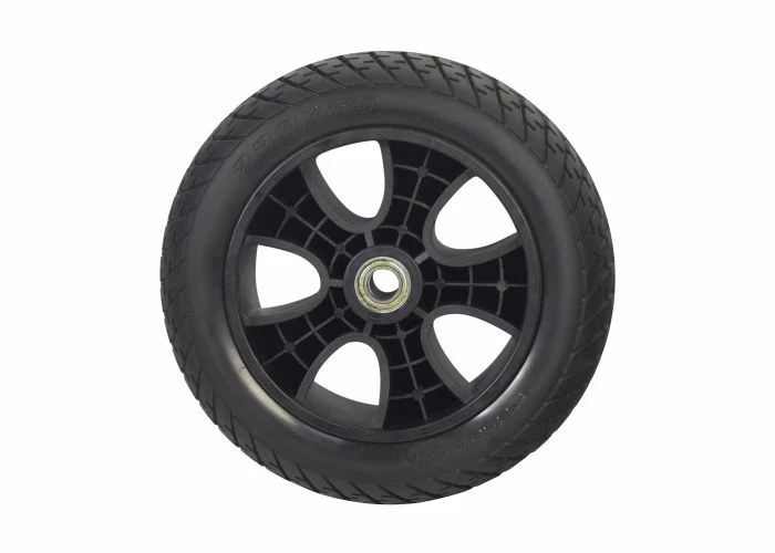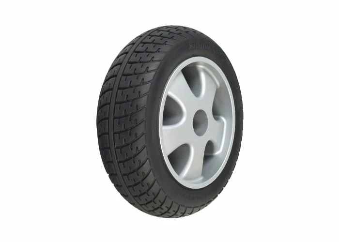 The 9″x3″ flat-free front wheel assembly for the Drive Phoenix HD 4-wheel mobility scooter is the genuine Drive Medical OEM replacement part