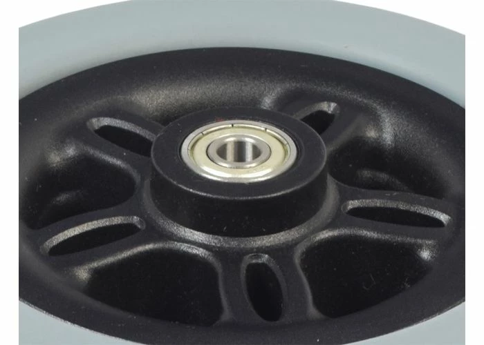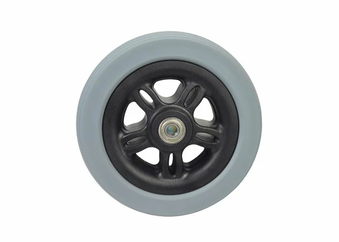 The 6″x2″ (150×50) front anti-tip/rear caster wheel assembly for the Jazzy 614, 614 HD, and Quantum Q614 power chairs does two jobs