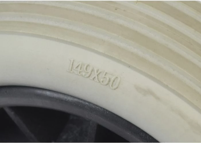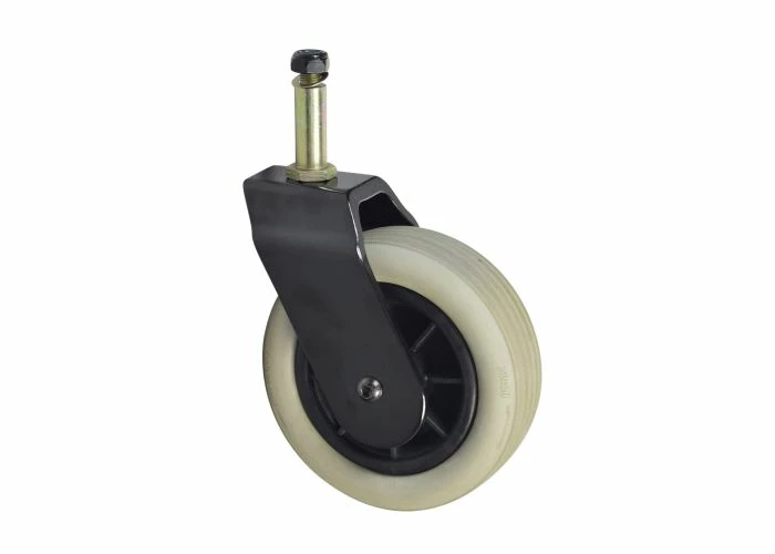 Front wheel assembly for the Shoprider 6Runner 10 Deluxe, Shoprider Jimmie, Shoprider Jetstream L, Shoprider Jetstream M, Shoprider Smartie, Shoprider Streamer Sport, and Shoprider WIZZ mobility scooters.