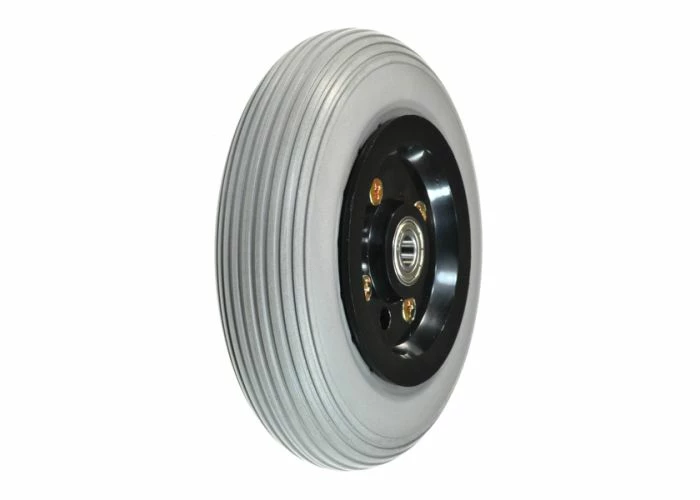 Front wheel assembly for the Shoprider Scootie and Shoprider XtraLite 4 mobility scooters.