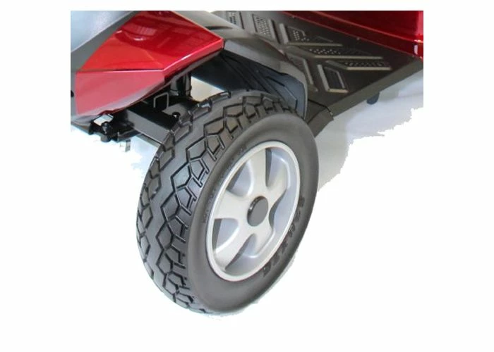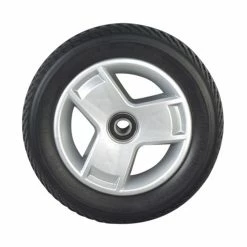 This 9″x3″ black front wheel assembly for the Heartway Zen (S11) 4-wheel mobility scooters comes mounted on the rim with the bearings installed
