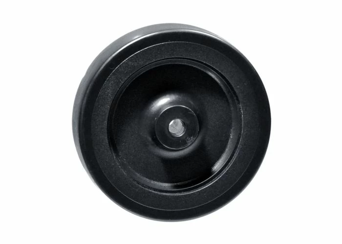 This solid black wheel is a direct OEM replacement for your original wheel assembly.