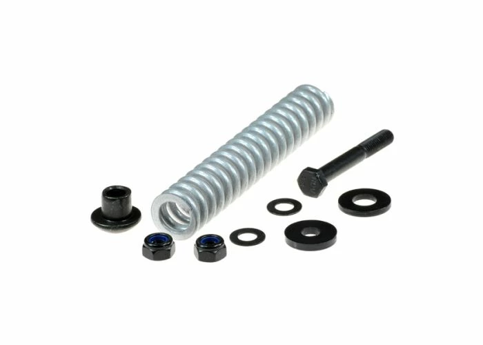 This assembly comes complete with shock-absorbing spring, nuts, bolt, and washers.