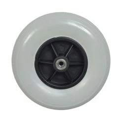 This is a very common size and style of power chair caster wheel, and has for the most part replaced the larger older style 200×50 (8″ x 2″ roughly) polyurethane, foam-filled, or pneumatic caster wheels.