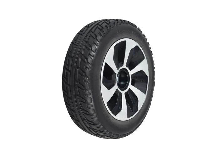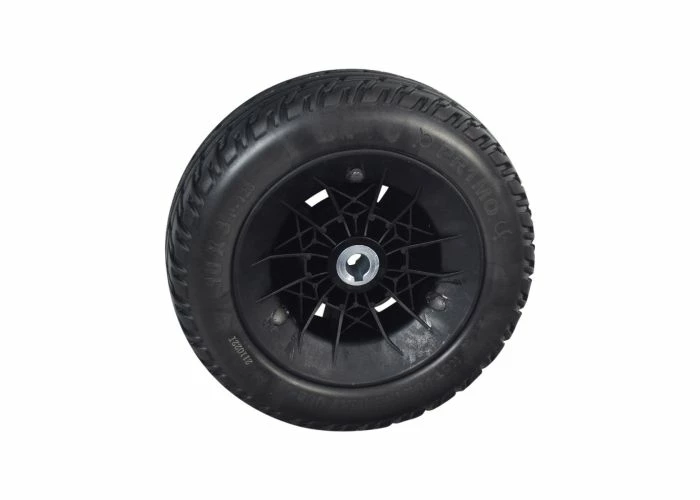 10″ solid tire on a 6-spoke rim