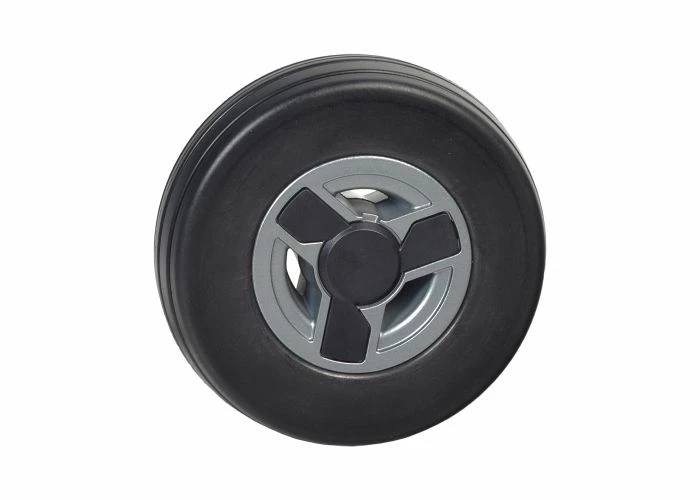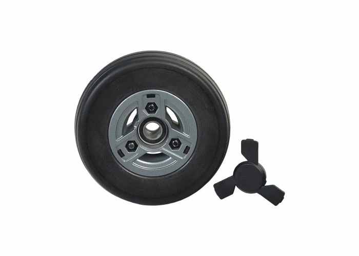 If your Go Chair was made in 2016 or later, this 6″ black caster wheel assembly for the Go-Go Go Chair features a flat-free black solid tire mounted on a gray Tri-spoke rim with caster cap