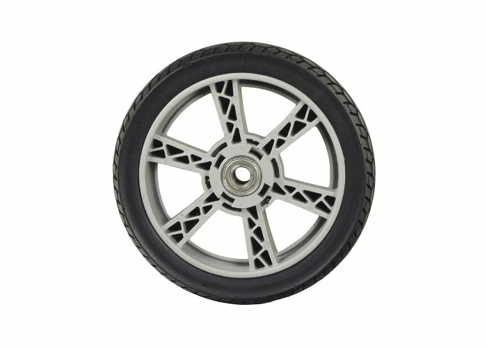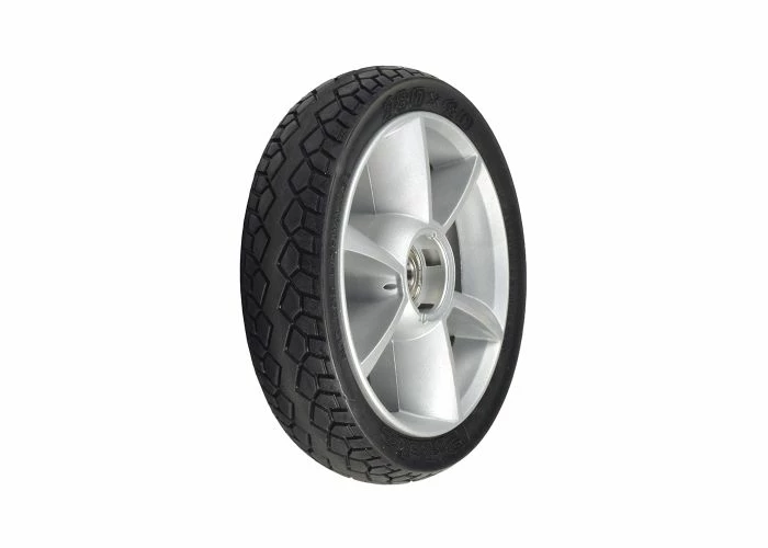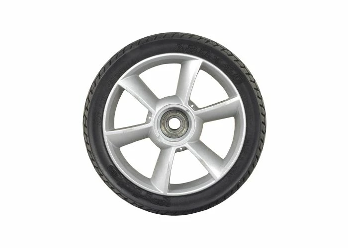 The 7″x1.6″ (180×40) front wheel assembly for the Go-Go Folding Scooter (S19) comes complete with the solid flat-free tire and rim pre-assembled, so installation is quick & easy.