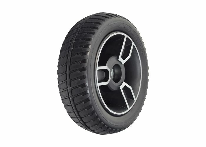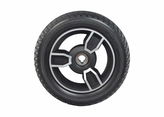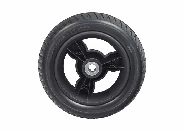 This replacement 8″ rear wheel assembly for the Jazzy Zero Turn mobility scooter comes complete the rim, an 8″ black low profile tire, and pre-installed bearings.